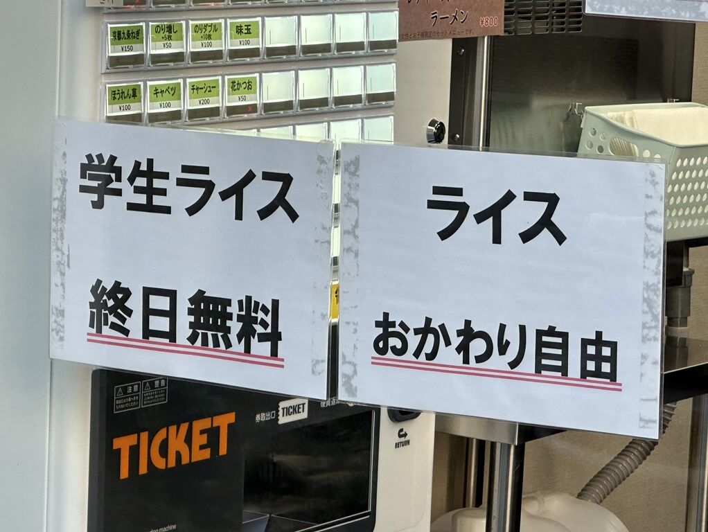 学生ライス終日無料おかわり自由。なお、オープン初日の本日はどなたでもライス無料。