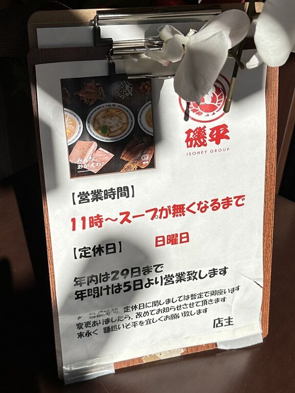 2022年12月9日オープン。大井町に居酒屋2店舗、青物横丁に焼肉店を展開する「磯平」グループのラーメン業態店。元々「焼肉 いそ平」でラーメンを提供していて、それが好評だった様です。「蟹らあめん 一本道」の後こちらへ。