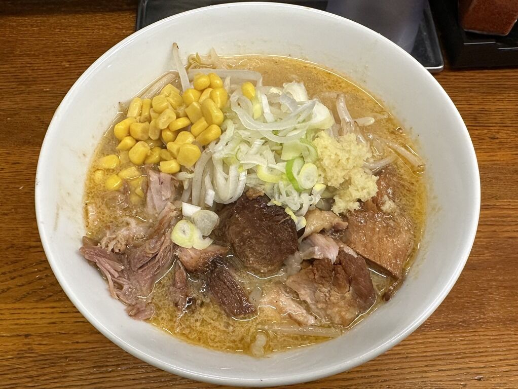 入店するとまず券売機で食券購入です。主なメニューは、味噌らーめん900円、辛味噌らーめん950円、全部のせ+300円、他。無料トッピングのにんにく、しょうがも券売機で選ぶ方式。新店のコンセプトは「味噌と限定」で、まずは味噌からスタート。なお、ラードが入手困難&価格暴騰のため味噌は期間限定の可能性も。