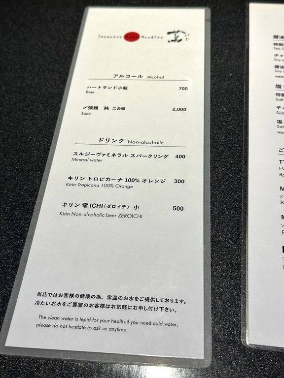 主なメニューは、特製醤油SOBA3000円、醤油SOBA2000円、塩SOBA2000円、特製塩SOBA3000円、TTKGトリフュ香卵かけご飯・Mt.Loin BLACKロース飯300円、Mt.Loin WHITE 葱塩ロース飯300円、Brock'n Loin RED 肉めし 各300円、他。