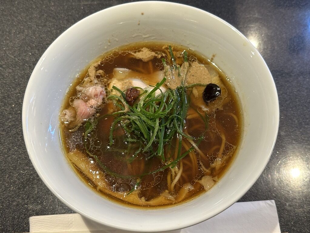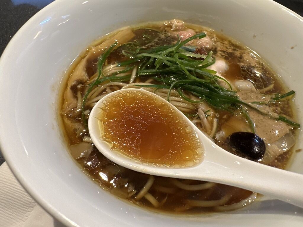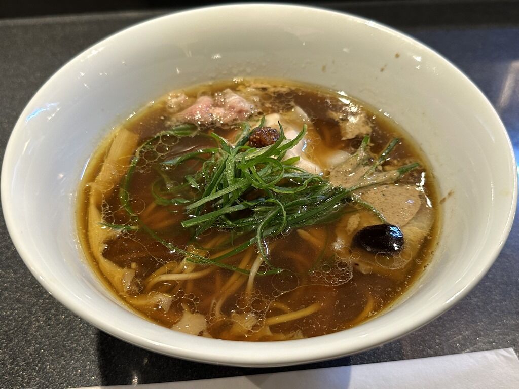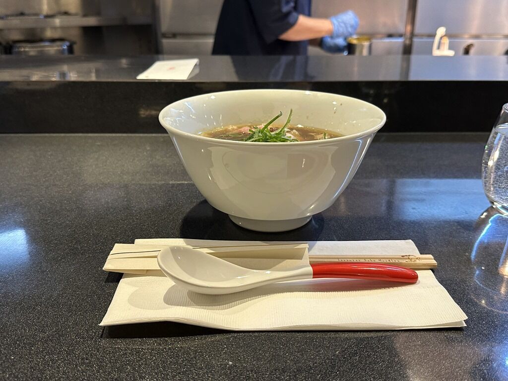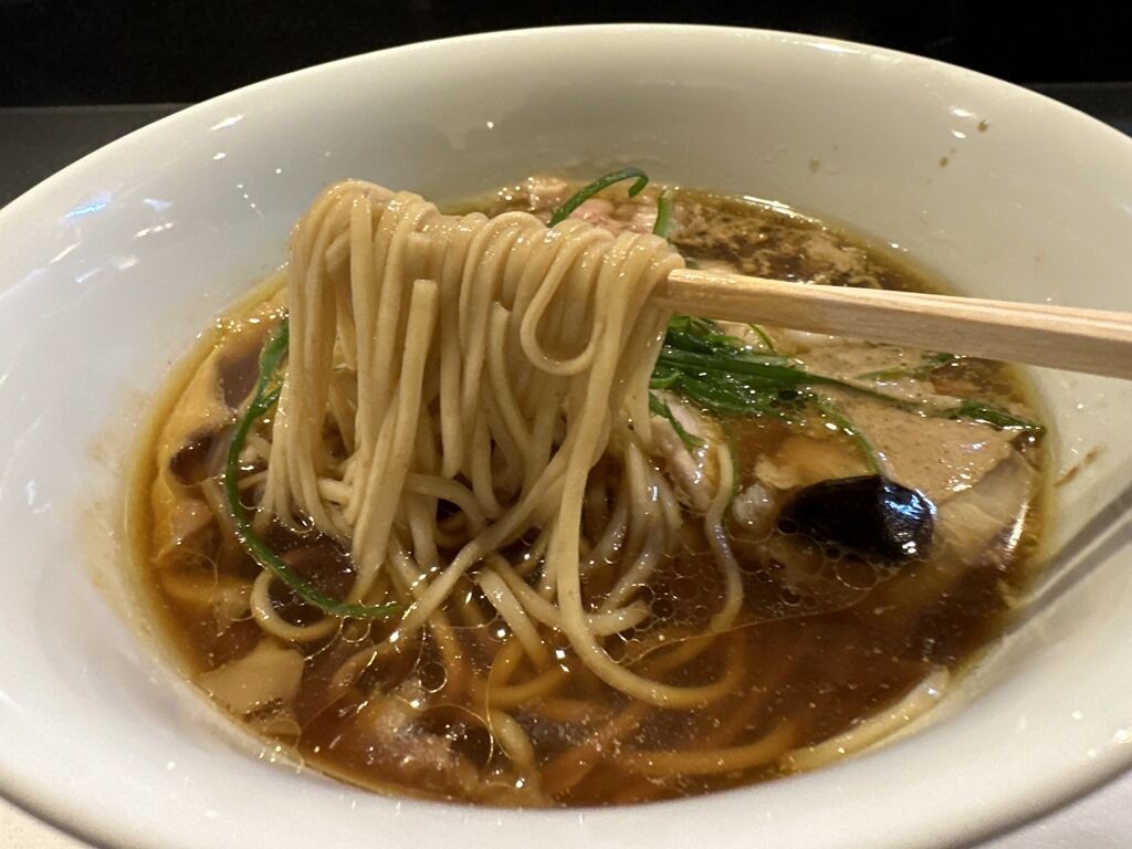 スープはさらさらの無化調清湯醤油味。天草大王の丸鶏、黒豚、イベリコ豚に香味野菜と香草から抽出した動物スープ、大量の浅利と一等昆布の余韻を引き立たせる貝のスープ、特注の削り節機で店で削る鹿児島県本枯れ節などの魚介スープを合わせたトリプルスープ。醤油ダレは、和歌山県二年非加熱丸大豆醤油、兵庫県非加熱淡口醤油にムール貝、乾物を合わせたもの。香りからトリュフオイル復活かと思いきやトリュフパウダーでした。味的には、2時間待ちが常態化した全盛期の巣鴨時代をさらに奥行き広くふくよかにブラッシュアップしたような味わい。芯にあるのは紛れもなく蔦であり大西さんの味。これぞ「「Japanese Soba Noodle」な一杯ですごく美味しい!
