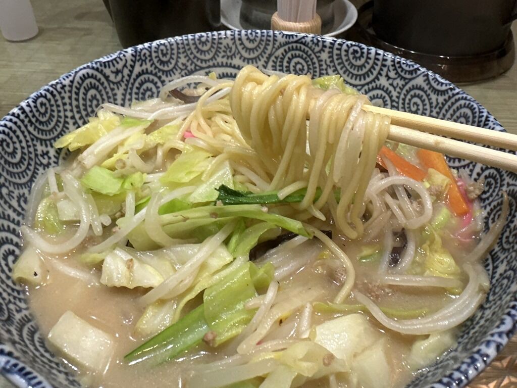 麺は村上朝日製麺所製のストレート中太タイプ。本場のちゃんぽん麺よりやや細身な感じもしますが、雰囲気出ていてちゃんぽん感はしっかりあります。