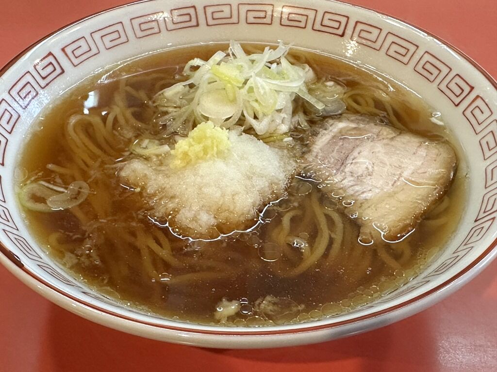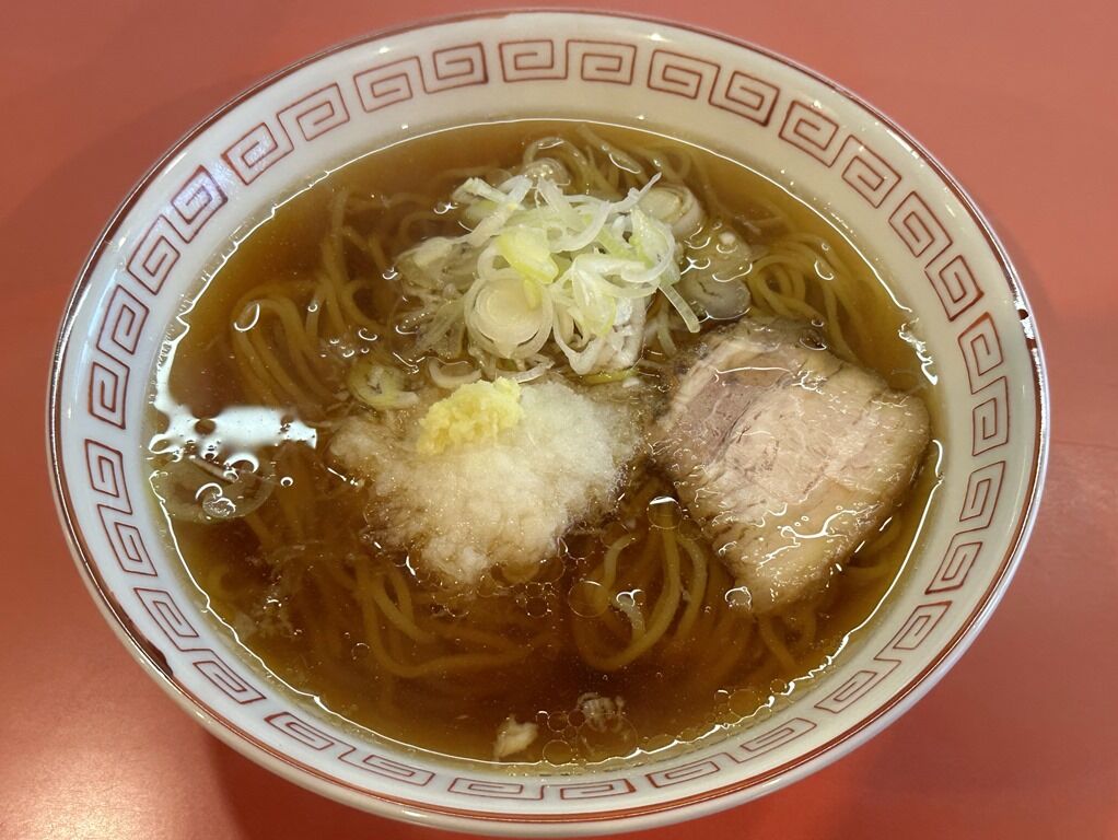 具はチャーシュー、おろし生姜、大根おろし、きざみねぎ。大根おろしは前日おろした物を使用とのことで、辛味なくさっぱりといただけます。消化促進に効果ありますね。