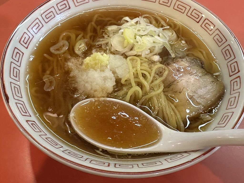 スープはさらさらの清湯醤油味。和節使用のあっさり蕎麦つゆ的な味わい。そして眠い朝にこれが実に美味しい!渇いた身体に水分とミネラルと塩分と元気がみなぎって来ます。大根おろしがまた旨くて朝食感アップ。朝に相応しいしみじみと沁みる一杯ですごく美味しい!