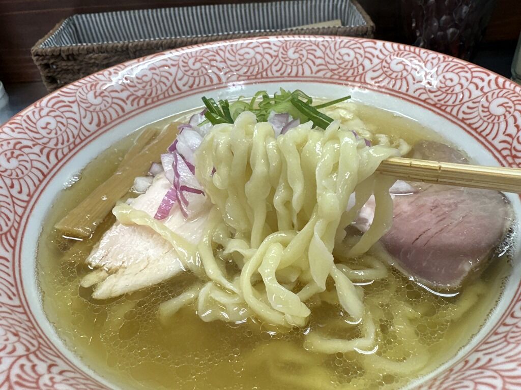 水はπウォータ使用。「鰺煮干しの塩ラーメン」は中細麺か手揉み麵か聞かれます。