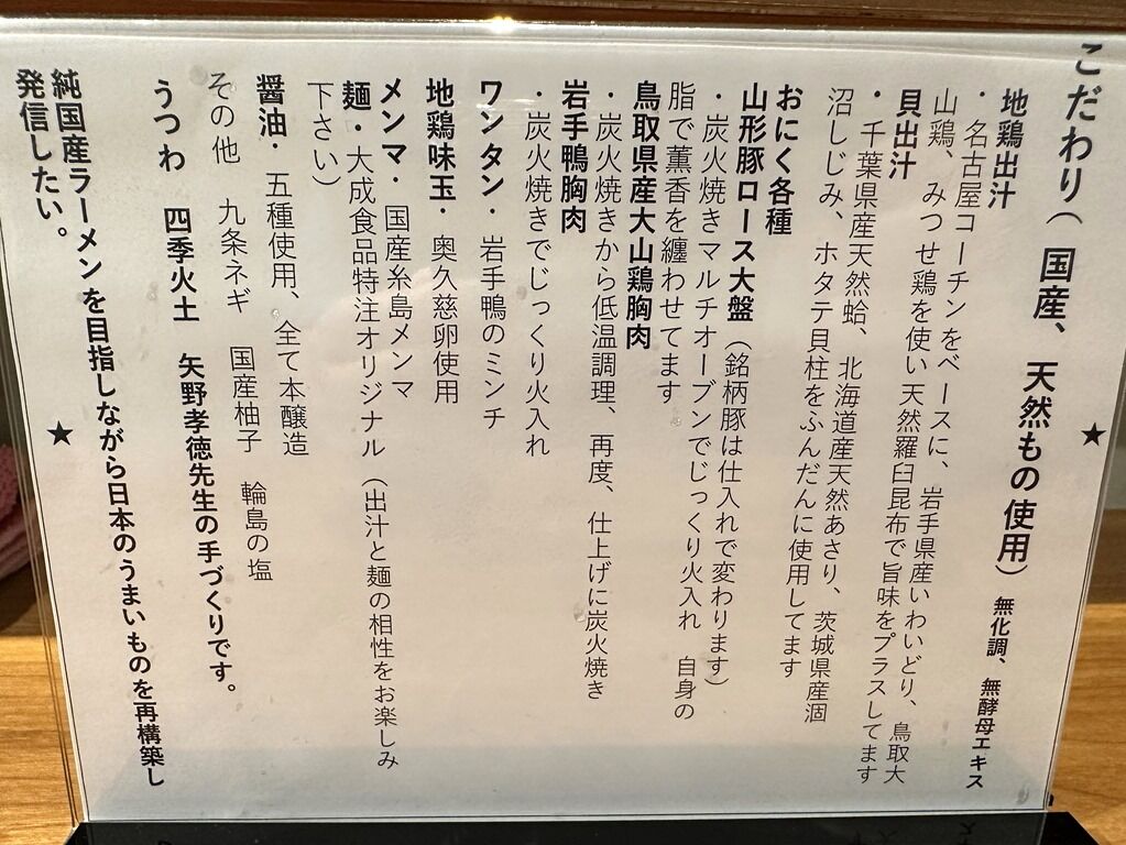 純国産ラーメンを目指しながら日本のうまいものを再構築し発信したい。