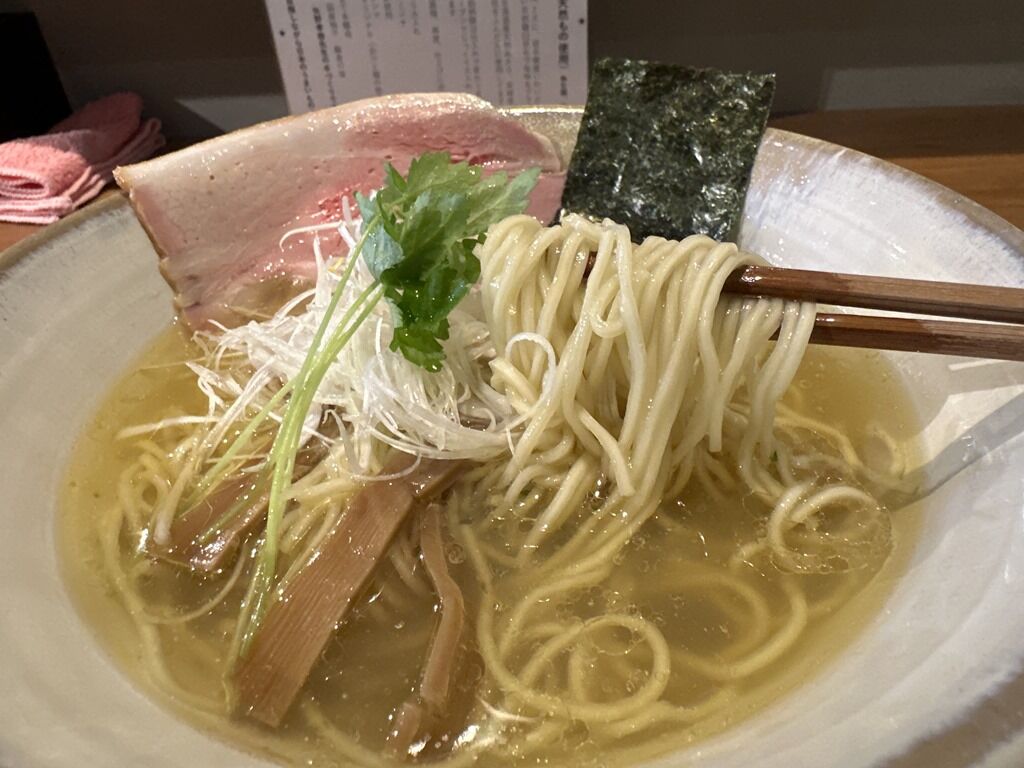 スープはさらさらの清湯塩味。地蛤・あさり・しじみと地鶏のWスープ。醤油は地鶏メインのスープで、醤油と塩はタレ以外に出汁が異なります。貝出汁の旨みが広がるえも言われぬうっとりするような味わい。一口目から汁完を確信、深いコクとまろやかな旨みに溢れた身体が欲して喜ぶ逸杯ですごく美味しい!
