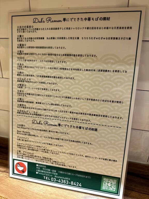 2023年5月24日、自由が丘の「Dad's Ramen 夢にでてきた中華そば」へ。