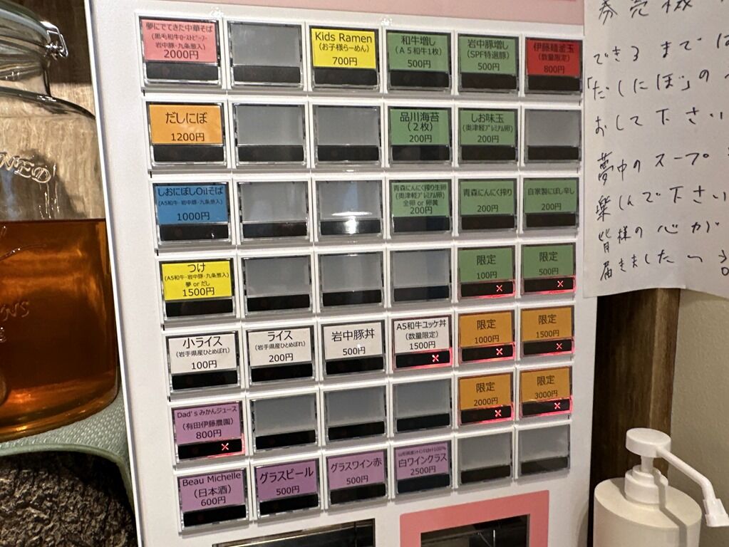 入店するとまず券売機で食券購入です。メニューは初回レポで書きましたが、一部価格改定と種類が増えているため改めて書き起こします。