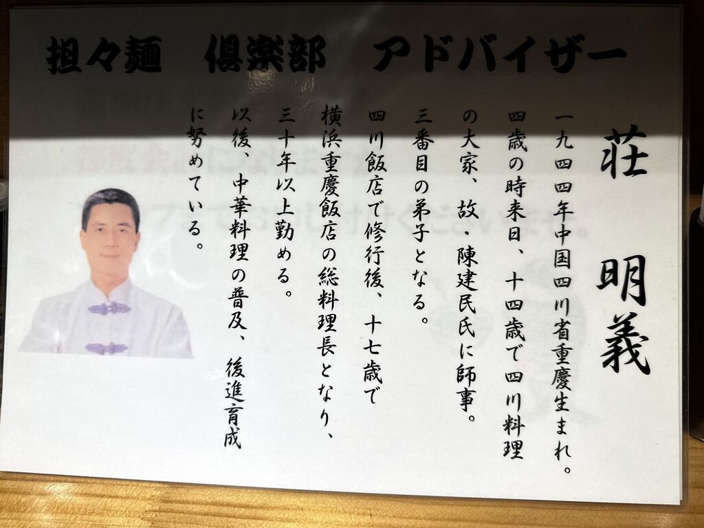 担々麺のアドバイザーは、四川料理大家陳建民氏の三番弟子の荘氏とか。