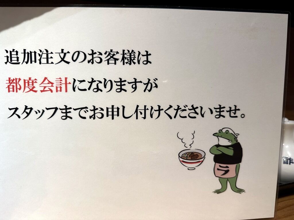 BGMはJ-POP、きらり、猫、Lemon、他♪箸は割り箸。卓上調味料は一味唐辛子、おろしニンニク、醤油、酢、辣油、GABANサンショウパウダー・ブラックペッパー、ジョロキア・サドンデスソース。デスソースが結構無くなってるのが凄い!