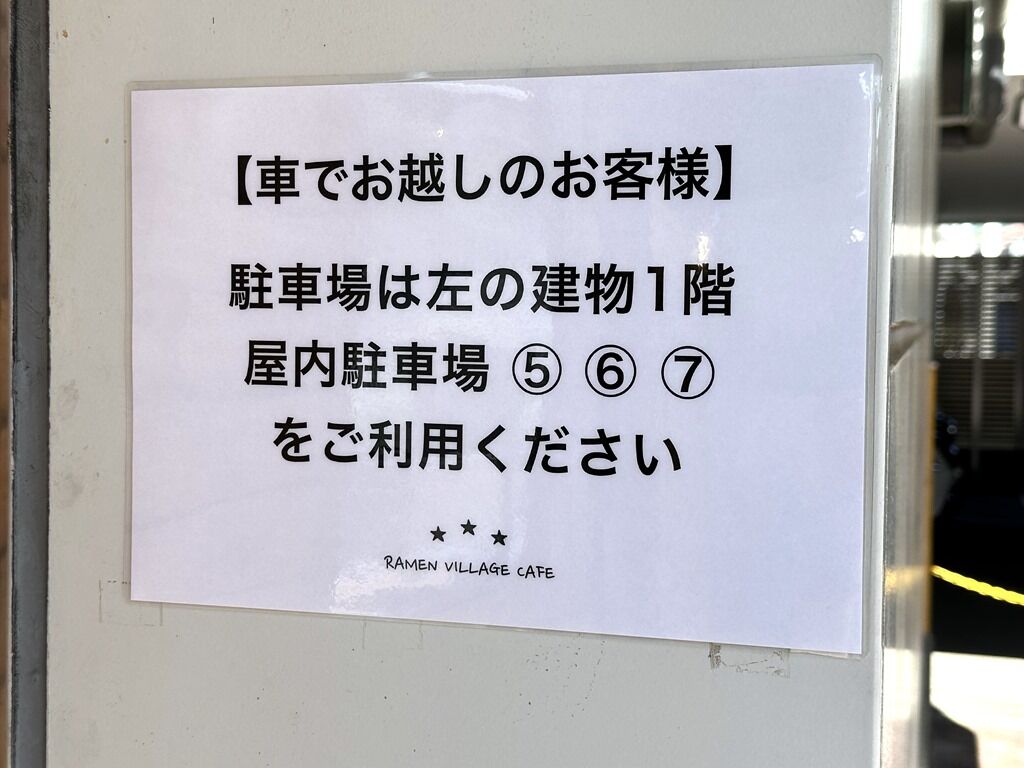 駅から距離がありますが、駐車場は店舗左の建物1F屋内駐車場5、6、7番の3台分用意あり。