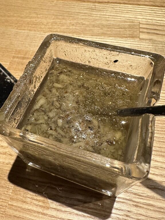 ラベルに「煮干専用 ドクロマーク 内臓オイル DANGER」とある、煮干のワタで作ったオイル。「濃厚煮干」味変に、コクと苦みとエグミから転じた旨みをプラス。 これまたすごいツールです。