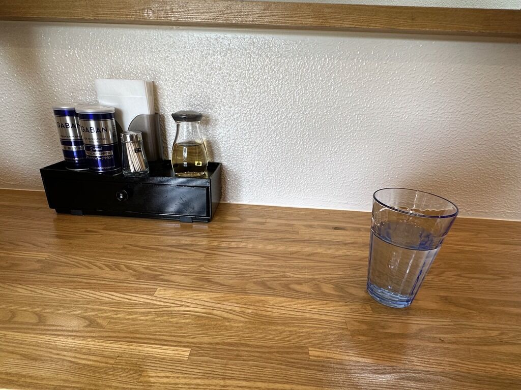 スタッフは店主さんと女性2の3名体制。BGMは無し。箸は割り箸。卓上調味料はGABANホワイトペッパー、ブラックペッパー、酢。