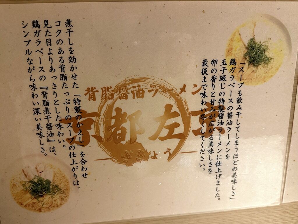 2023年8月29日、明大前の新店「背脂醤油ラーメン 京都左京」へ。