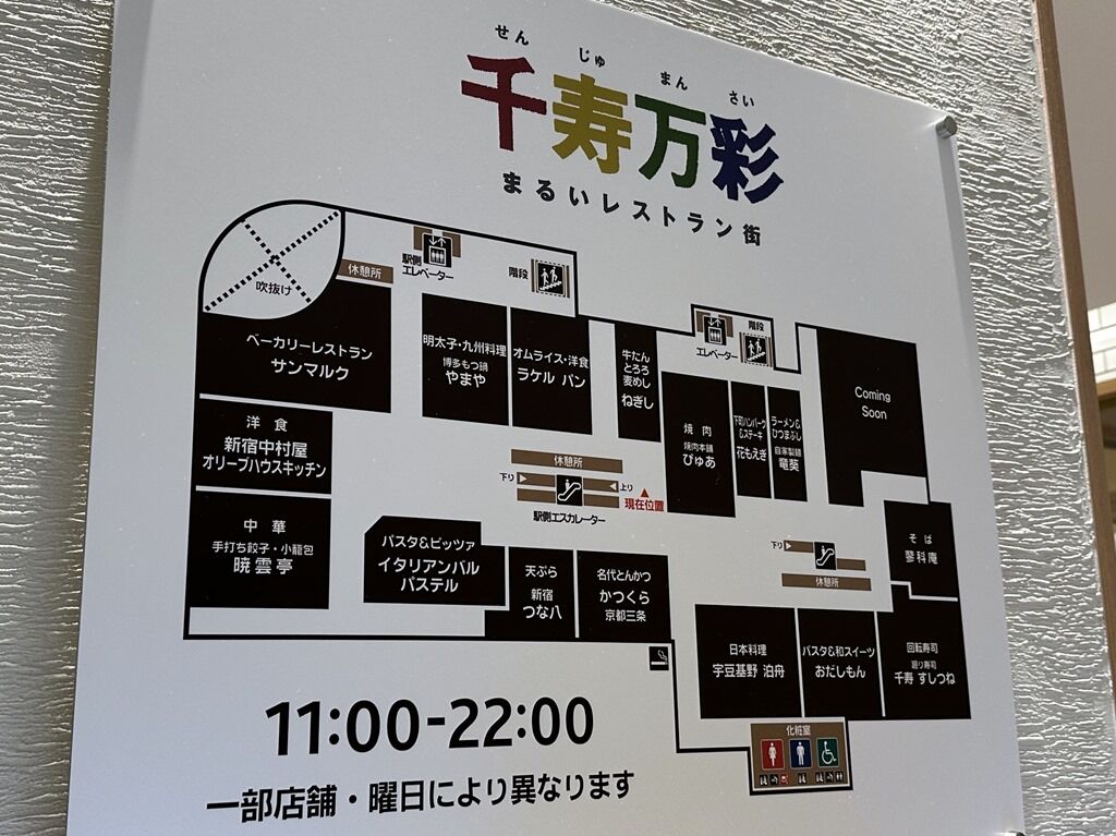店の場所はペデストリアンデッキで北千住駅西口直結「マルイ北千住店」9Fまるいレストラン街「千寿満彩」内。「つけめんTETSU」の跡地