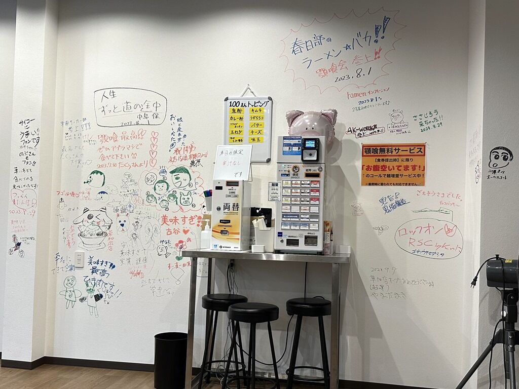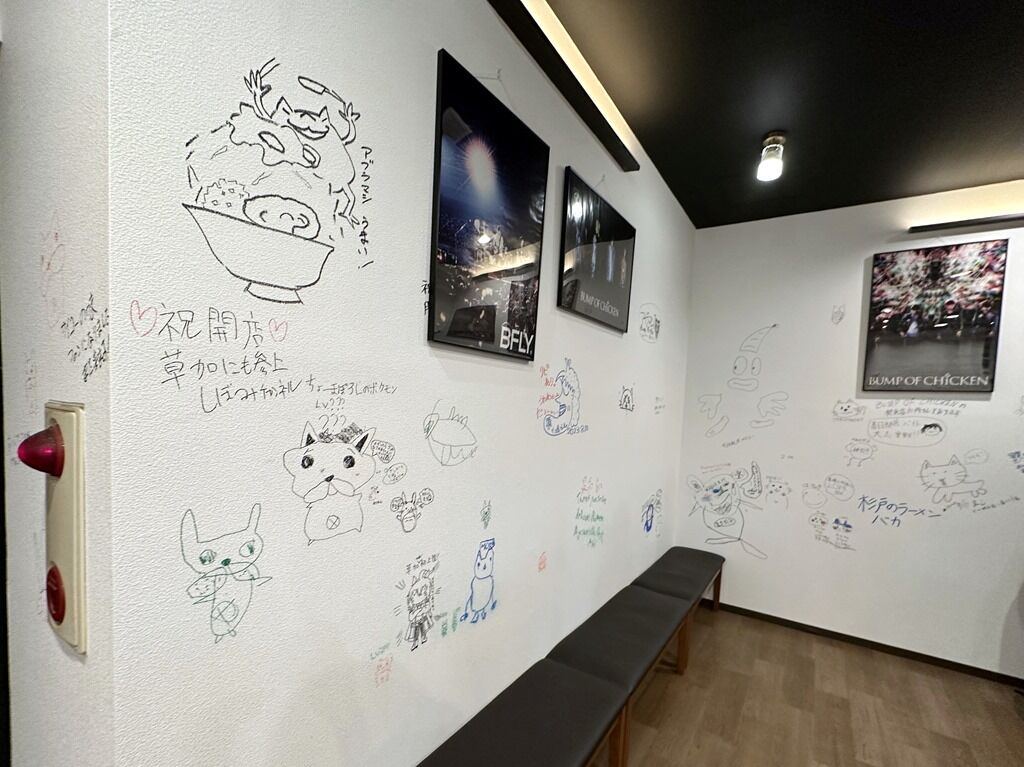 店内は壁一面にファンの落書きがあってにぎやかで楽しい雰囲気。お客さんから愛されてることが良くわかります。またBUMP OF CHICKENのポスターが壁面至るところに掲示してあって、BUMP OF CHICKEN愛が店内に満ち満ちています。