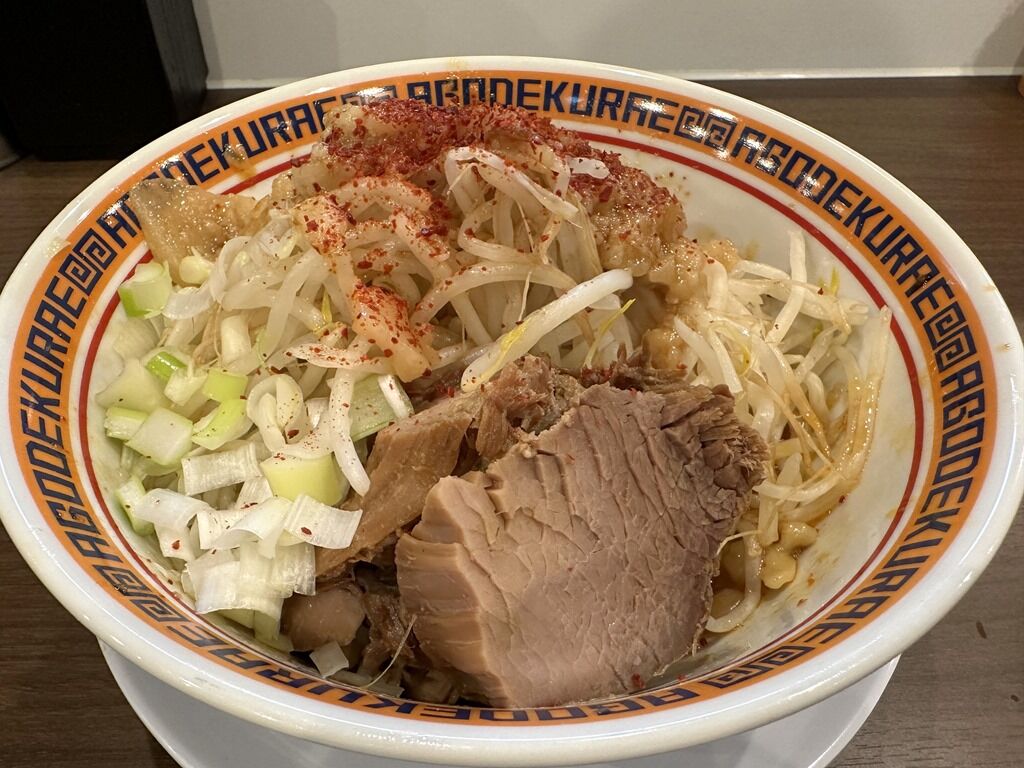 2023年8月1日オープン。春日部の富士丸系「顎で喰らえ」の2号店。田原町の新店で売切れ終了に遭遇、そういえばと、駅から遠くて行きそびれていたこちらでリカバリ。