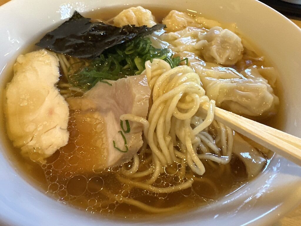 具は豚ロース・鶏胸肉の低温調理チャーシュー2種、メンマ、肉ワンタンx2、エビワンタンx2、京都知七の九条ねぎ、海苔。ワンタンは、肉ワンタン、エビワンタンどちらもやはり相当美味しく、ほぼ八雲相当のクオリティ。