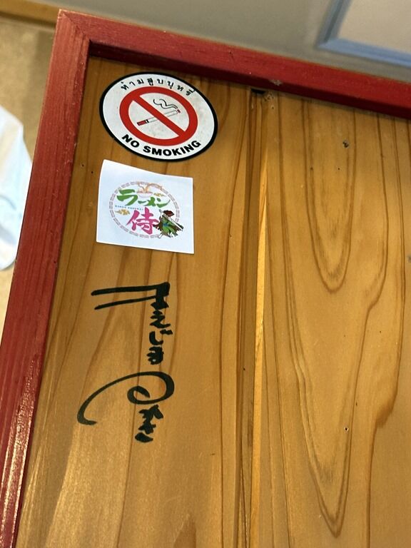 スタッフは店主さんと接客の女性の2名体制。仕切り板に前島さんのサインとYouTubeチャンネル「ラーメン侍」のステッカー。なお、記事執筆時「ラーメン侍」に、「支那そば くろ田」の動画は見当たらず、取材はこれからでしょうか。