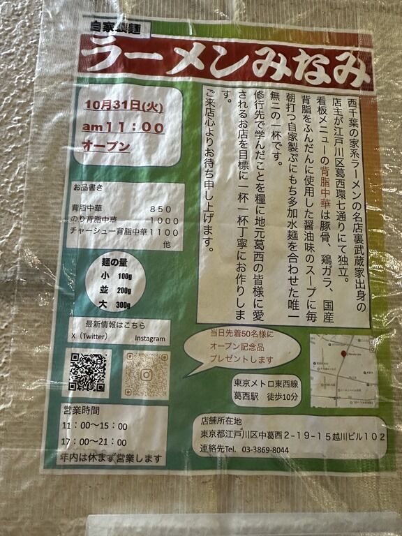 2023年10月31日、本日オープンの新店「ラーメン みなみ」へ。