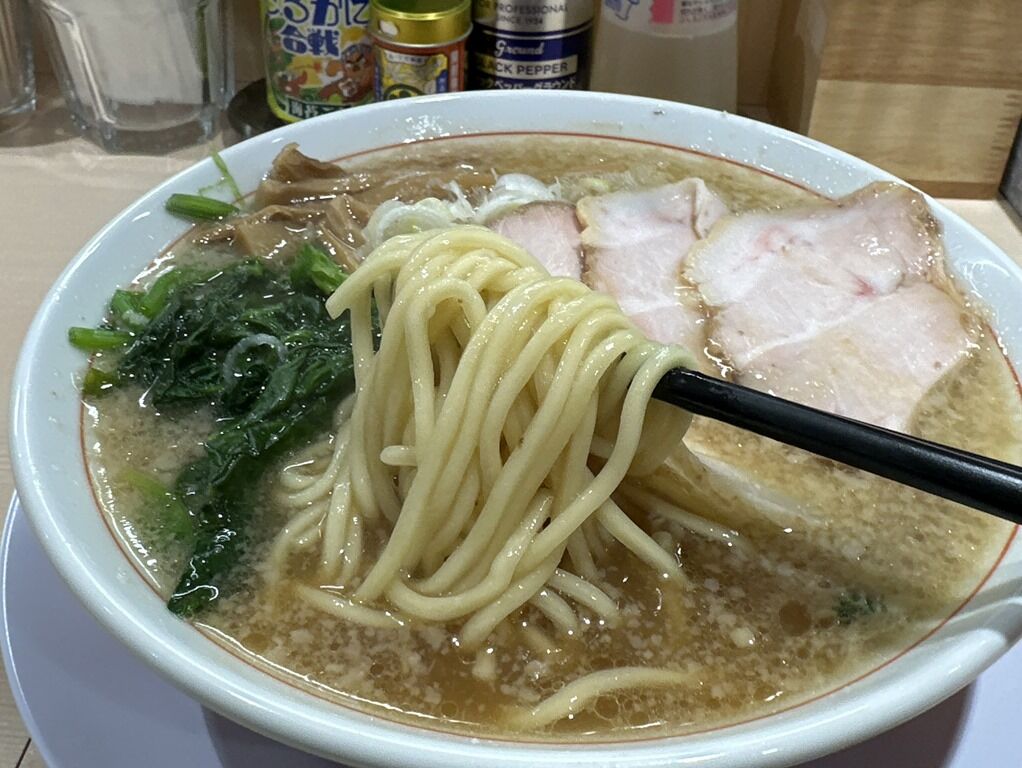 スープはさらさらの背脂醤油味。目の前で背脂ちゃっちゃするのって、見ていてアガりますね。思いのほか食べやすい軽めな仕立てで、ギタ系食べ慣れた方は、濃いめ多めにしてちょうどかも知れません。