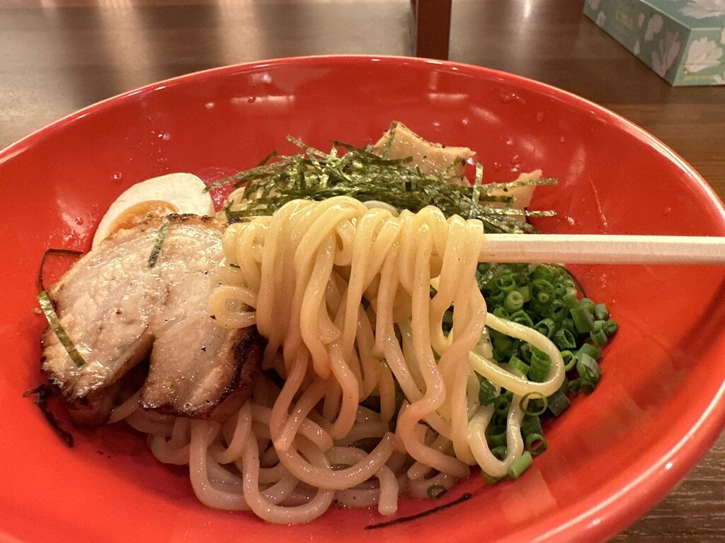 麺はストレート太麺。タレは器の下。奇を衒わないオーソドックスでブレーンな油そば。しっかり混ぜてしょっぱ過ぎず油っこ過ぎず、ちょうど良い塩梅。そのまま食べても旨く、多彩な味変のアイテムのどれもが効果的。刻んでなくて混ざらないチャーシュー、味玉、メンマも箸休めに効果的でいい感じ。何気に完成度の高い一杯でとても美味しい!