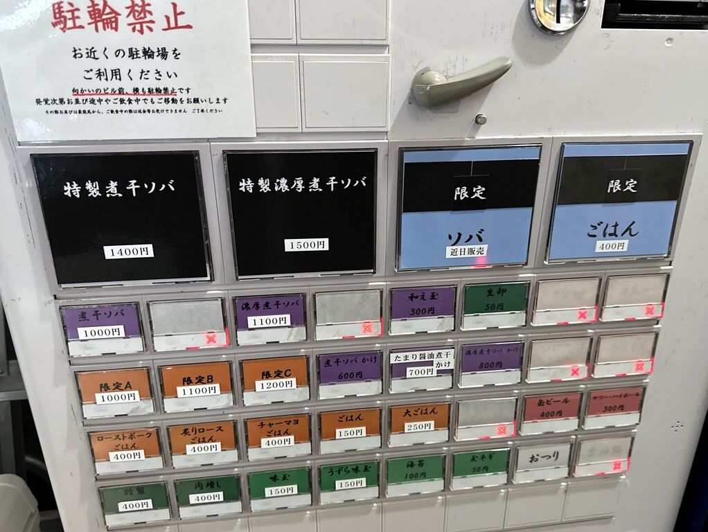 ゆっくり列が進んで案内されて店内へ。入店するとまず券売機で食券購入です。メニュー画像(下画像は撮影失敗のため、公式から借用)。