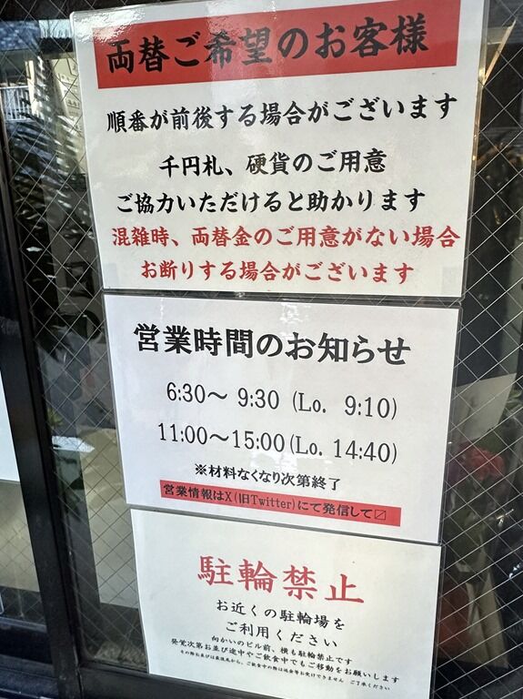 6:40頃到着で店内満席外待ち5に接続。満席時は先に食券買わずに列んで、案内があるまで待つシステム。