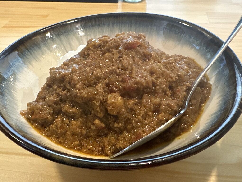 米は新潟県産コシヒカリの新米。キーマカレーは本格派そのもの。カレーで専門店が出せるクオリティ、もちろん健在。カレーだけでも美味。ラーメンと交互にいただくと、シナジーで旨さが倍々に。