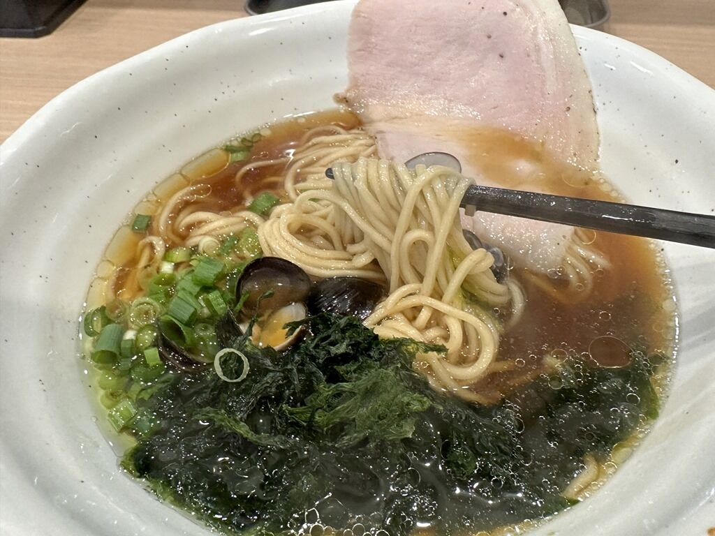 スープはさらさらの清湯醬油味。日本三大しじの茨城県涸沼産大和しじみと国産地鶏のスープ。アミノ酸・ビタミン・ミネラルが豊富で胃に優しく滋養に効あり。しじみの出汁がしっかりと感じられて、滋味深い味わい。なんだか健康になれそうですし、二日酔いにも良さそう。あおさが潮の香りをブーストしてくれます。じんわりと浸透するような味わいでとても美味しい!