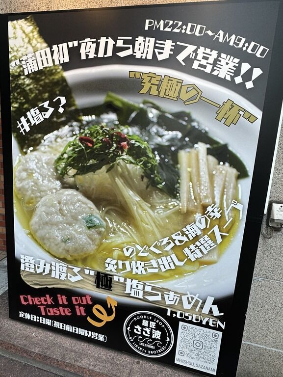 2023年11月21日、蒲田の新店「麺匠 さざ波」へ。
