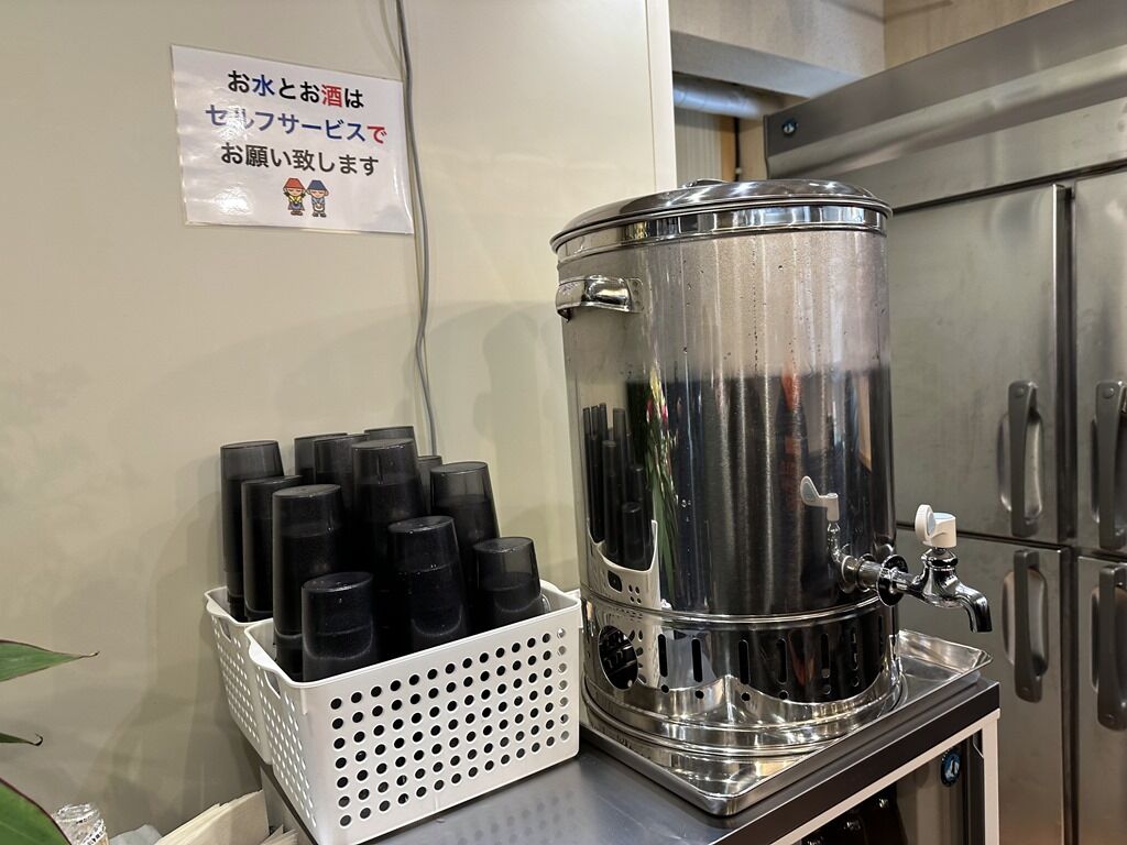 BGMは東京FM。箸は割り箸。卓上調味料はGABANブラックペッパー・ホワイトペッパー、酢。