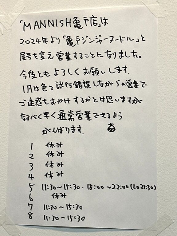 2023年1月5日本日プレオープンの新店「亀戸ジンジャーヌードル」へ。