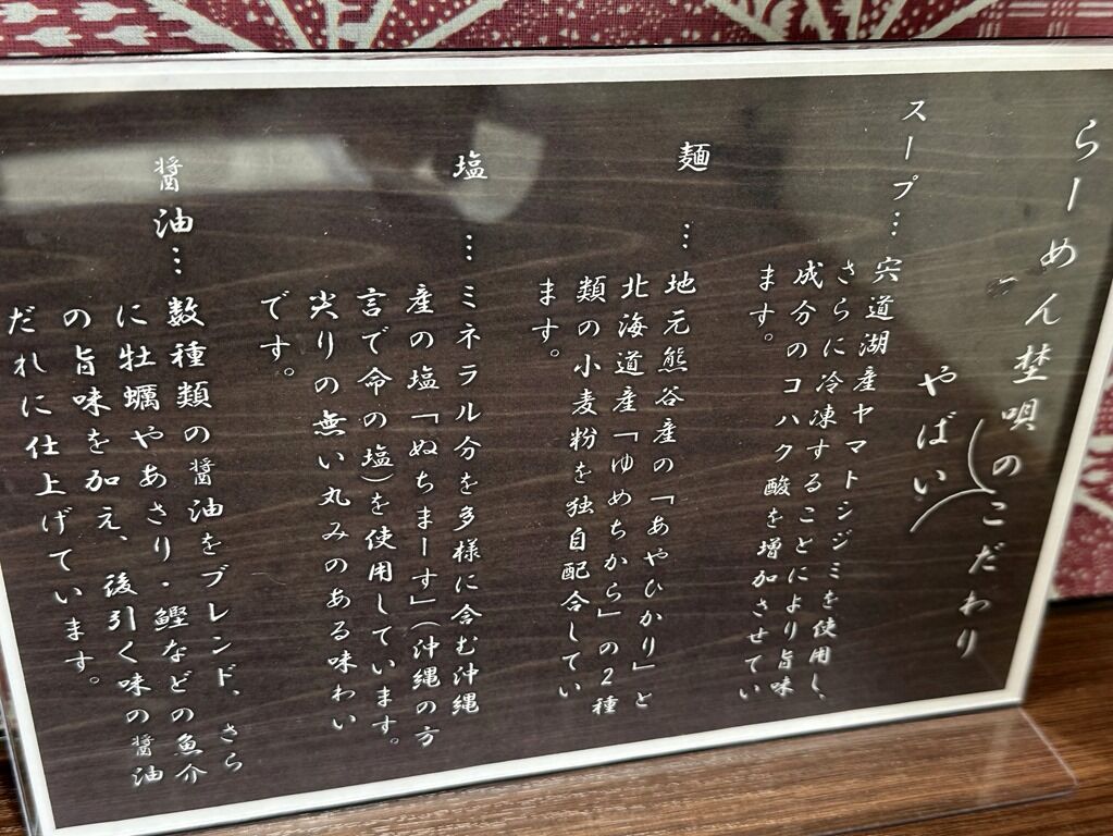 2023年12月19日大安&一粒万倍日にオープン。「8月〜脱サラして同年12月19日らーめん屋を開業しました」という店主さんによる、宍道湖産しじみスープと熊谷産小麦使用自家製麺のお店。