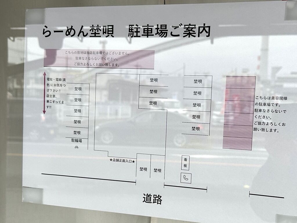 屋号「埜唄」の「埜」は、野原、広々ひろびろとした平地、町外れ、郊外などの意味を持つ常用漢字外(人名漢字)。「唄」はもちろん「うた」、「歌唄(かばい)」。合わせて「埜唄(やばい)」ですが、「ヤバい(らーめん)」と掛け合わせてると邪推。