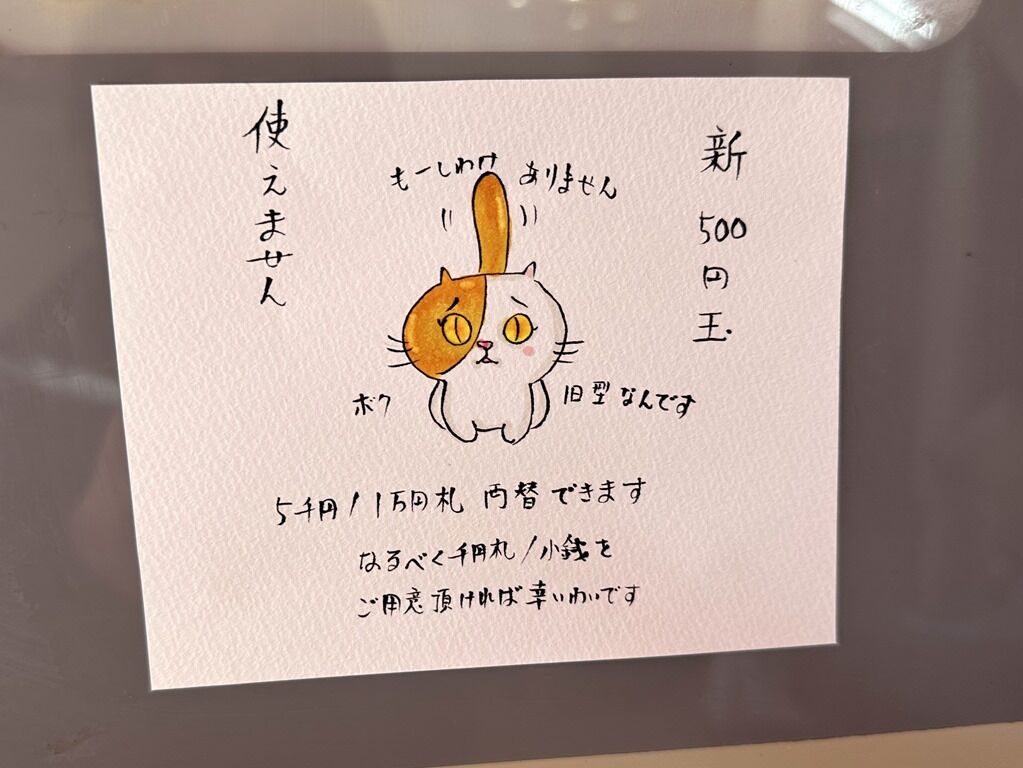後客いっぱい数名後にビール牛さん。退店時10人ほどの外待ち。営業中も麺打ちをされてるのが店主さん、ポップで多彩なイラストも見応えがあります。麺上げ盛り付け等の調理は助手さん担当のフォーメーション。