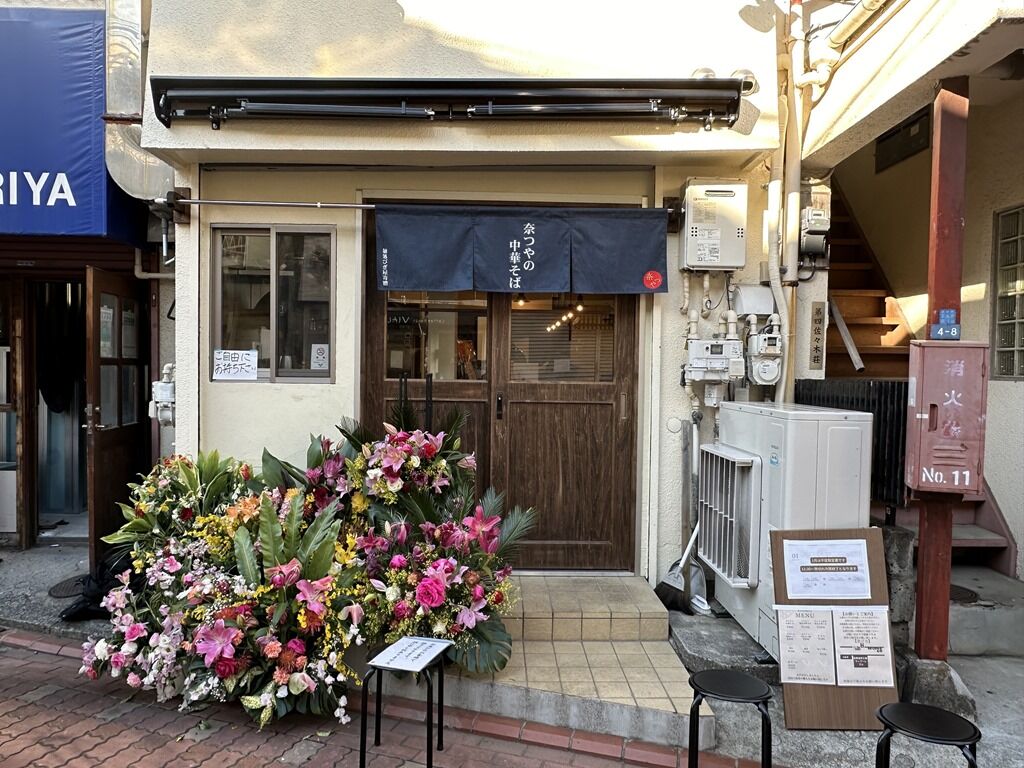 「奈つやの中華そば」は、2023年2月24日不動前にて、吉野家HDのシェアレストラン利用によるダイニングバー「WINCOVE」の間借り営業にてオープン。店主さんは名店「麺処 びぎ屋」等出身。屋号は店主奥様の名前から。営業時間は木金昼のみという高ハードル。ですが開店1時間前から行列の出来る人気店に。2023年9月29日の営業を持って間借り卒業。そしてこの度晴れて路面店へ移転。