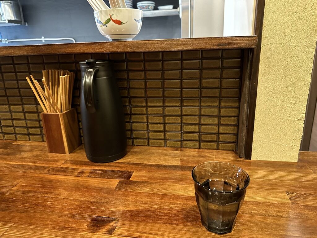 BGMはR&B。箸は竹の洗い箸で資源環境に配慮。卓上調味料は無し。