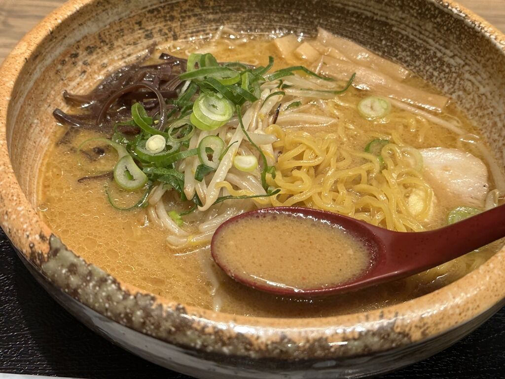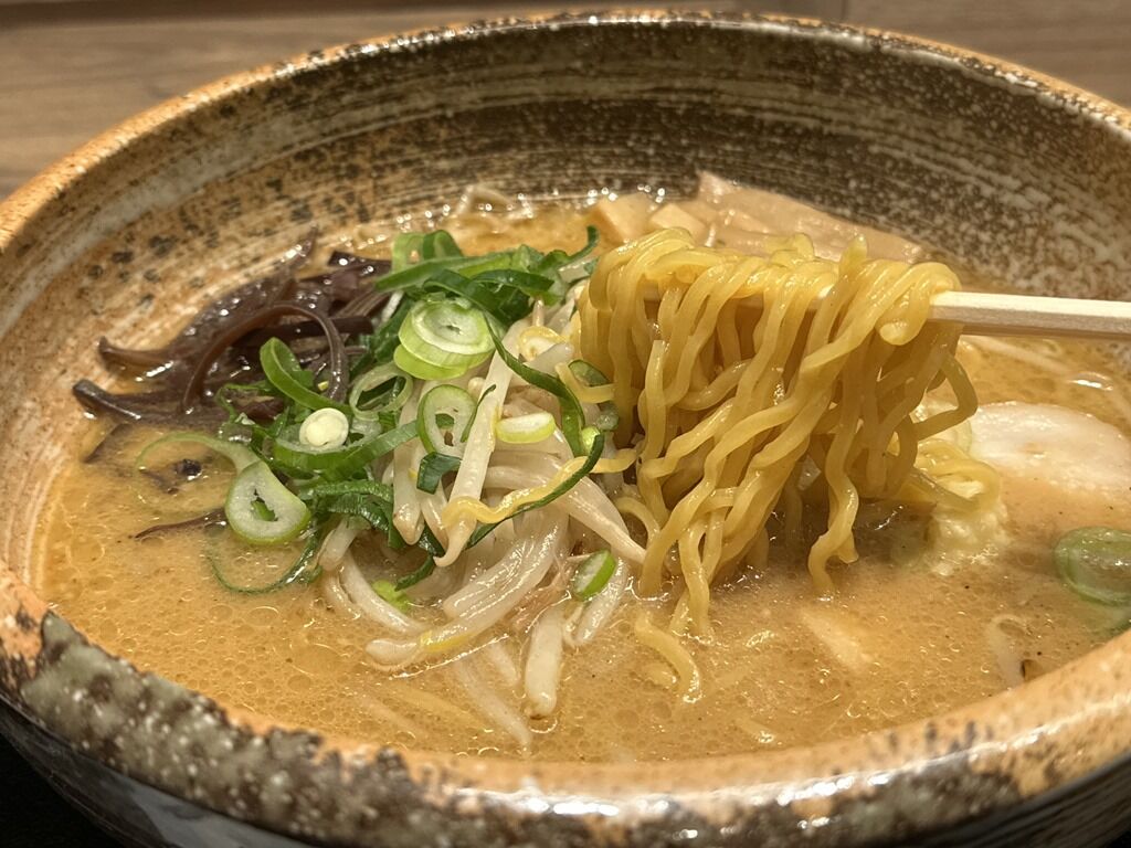 スープは熱々の味噌味。ビジュアルもそうですが味はまんま純すみ系のそれ。しかも純すみオールスターズかと見紛うばかりのハイレベルな味わい。みぞれと雪混じりの荒天と寒さもあって、なおのこと温かさが沁みます。寒い日には最高に映える一杯ですごく美味しい!