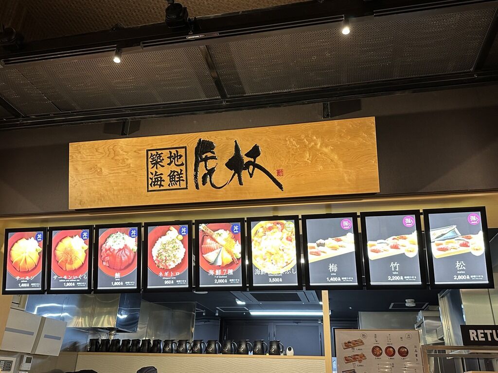 「豊洲場外江戸前市場」には約70店の飲食店が出店。一部海鮮系のお店の高額っぷりが話題で、インバウンドを当て込んでの高めの値付け(本マグロ丼6980円等)から「インバウン丼」と囁かれることに(下画像2枚は比較的良心的な価格のお店)。