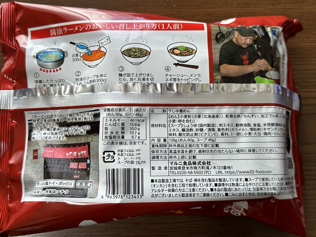 マルニ食品「トイ・ボックス監修 醤油ラーメン」。トッピングは別途用意。