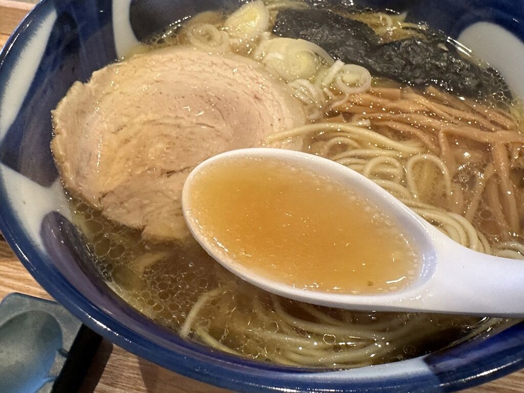 スープはさらさらの清湯醤油味。ごくあっさりとした動物性ベースの味。飾り気のないシンプル、プレーン、ペーシック、素朴で朴訥な味わい。飲んだ後の〆に良さそう。柚子胡椒がたいそう良くマッチして、マストアイテムな感じ。