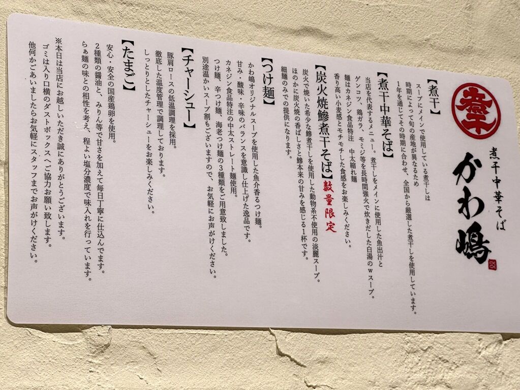 2024年5月20日、渋谷の新店「渋谷煮干中華そば かわ嶋」へ。