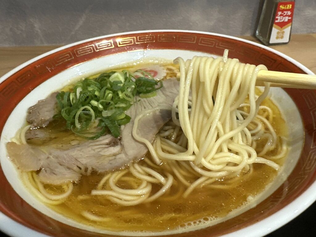 三河屋製麺製の麺はストレート中細タイプ。あっさりスープに主張し過ぎない麺が、麺とスープの一体感を醸し出しています。
