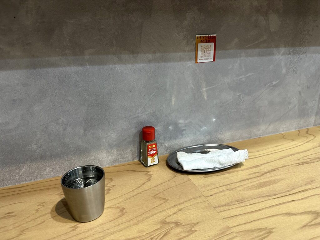 17:00頃到着で先客1後客1。厨房に店長さん?ワンオペ体制。椅子下に荷物用トレーあり。