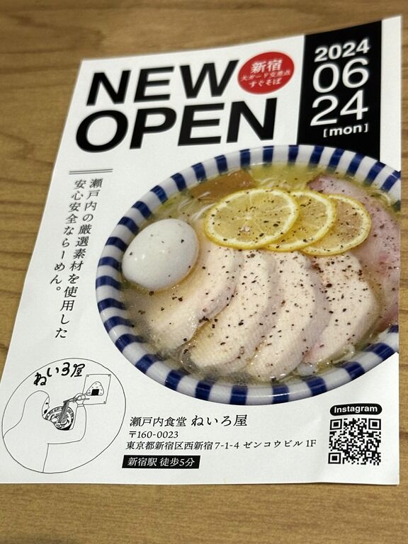 2024年6月25日、新宿の新店「瀬戸内食堂 ねいろ屋」へ。