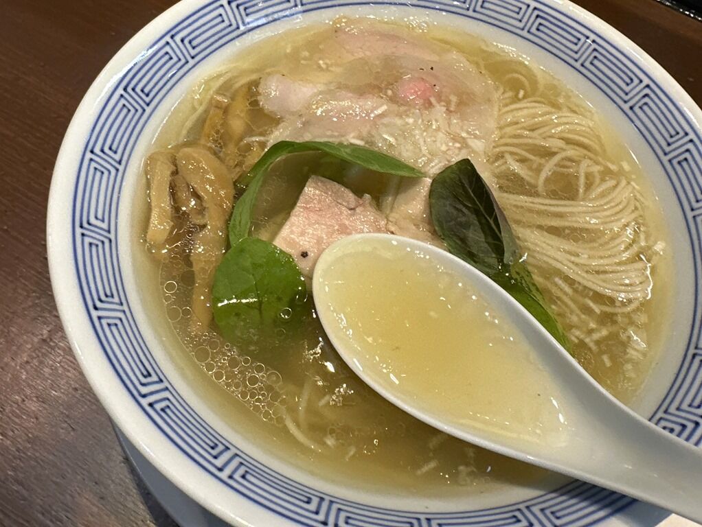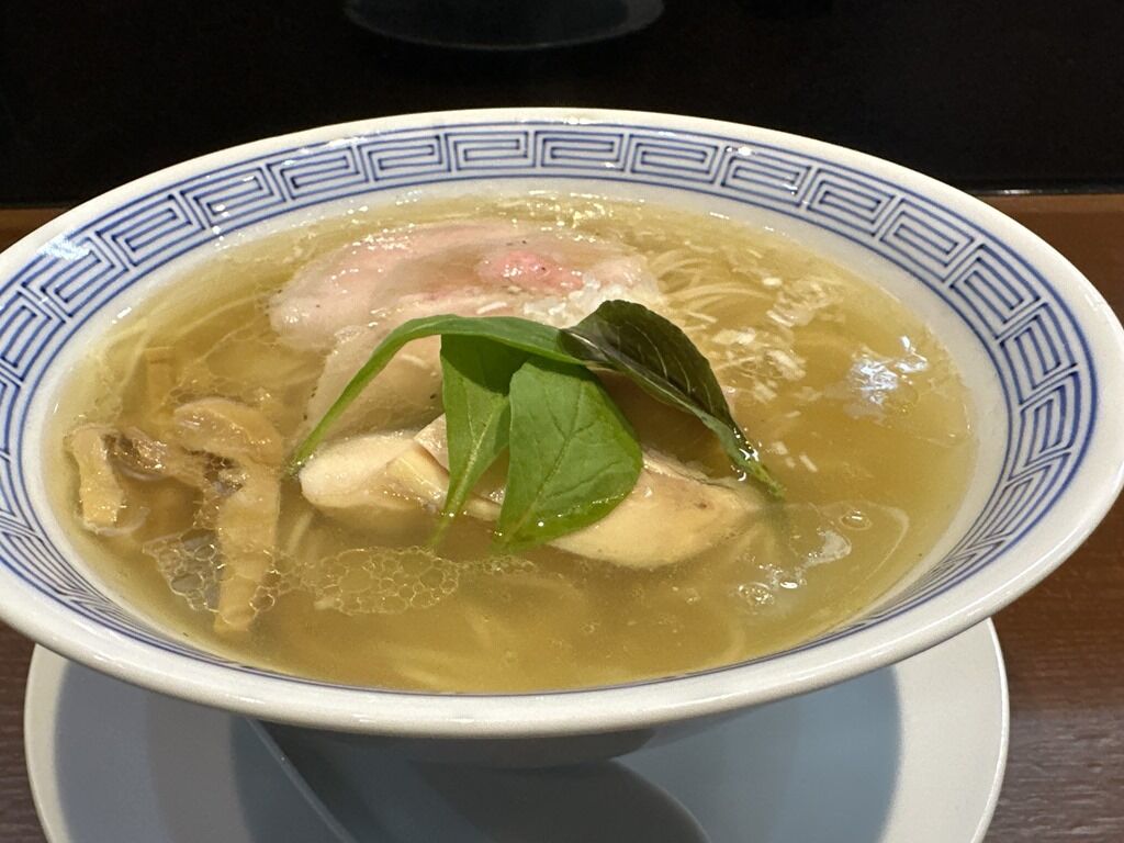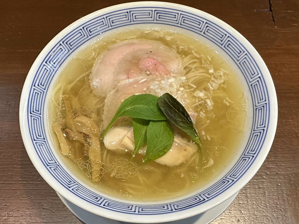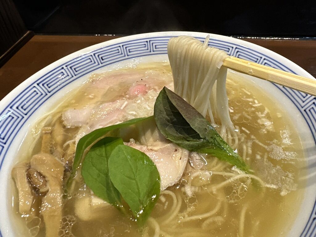 スープはさらさらの清湯塩味。岡崎おうはん丸鶏と国産豚メインに地鶏のガラや肉、野菜や海産物をふんだんに使用した出汁。鶏の風味、うま味、後味、余韻が素晴らしく、鶏をフルボディでリッチに味わえる官能的な味わい。後半冷めてくるに従い食材の様々なうま味が表出してきて、さらにコクと深みのある味に進化します。現時点で塩のマスターピースと言って過言ではない逸杯ですごく美味しい!