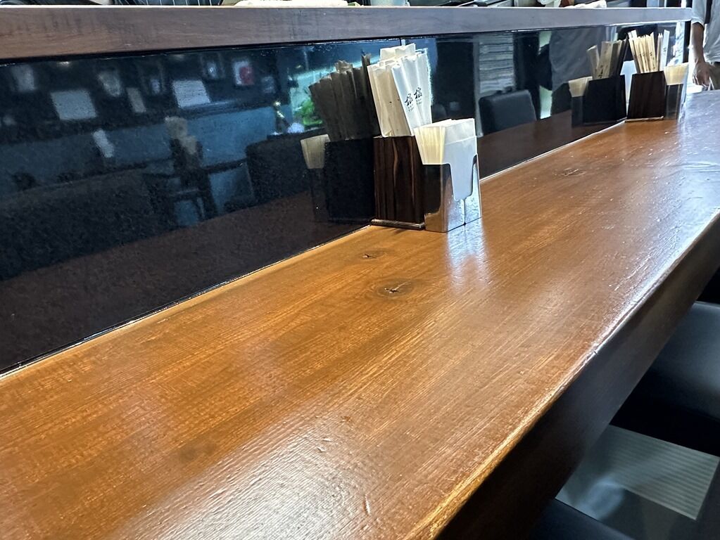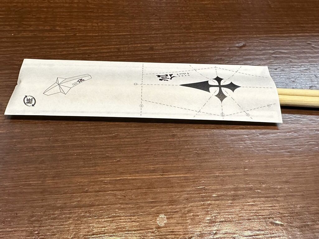 BGMはヘヴィメタ。箸は割り箸。箸袋のデザインにもこだわりが。卓上調味料は無し。