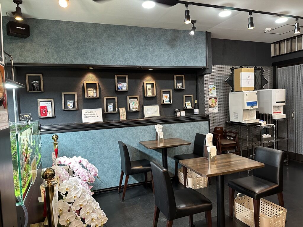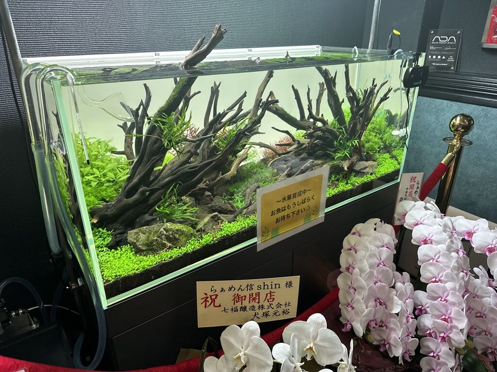 リニュアルに当たって店内に店主自ら製作したウェルカム水槽設置。現在水草育成中で魚はまだ。アクアリウムフリークの方と、店主が語り合いたいらしいです。